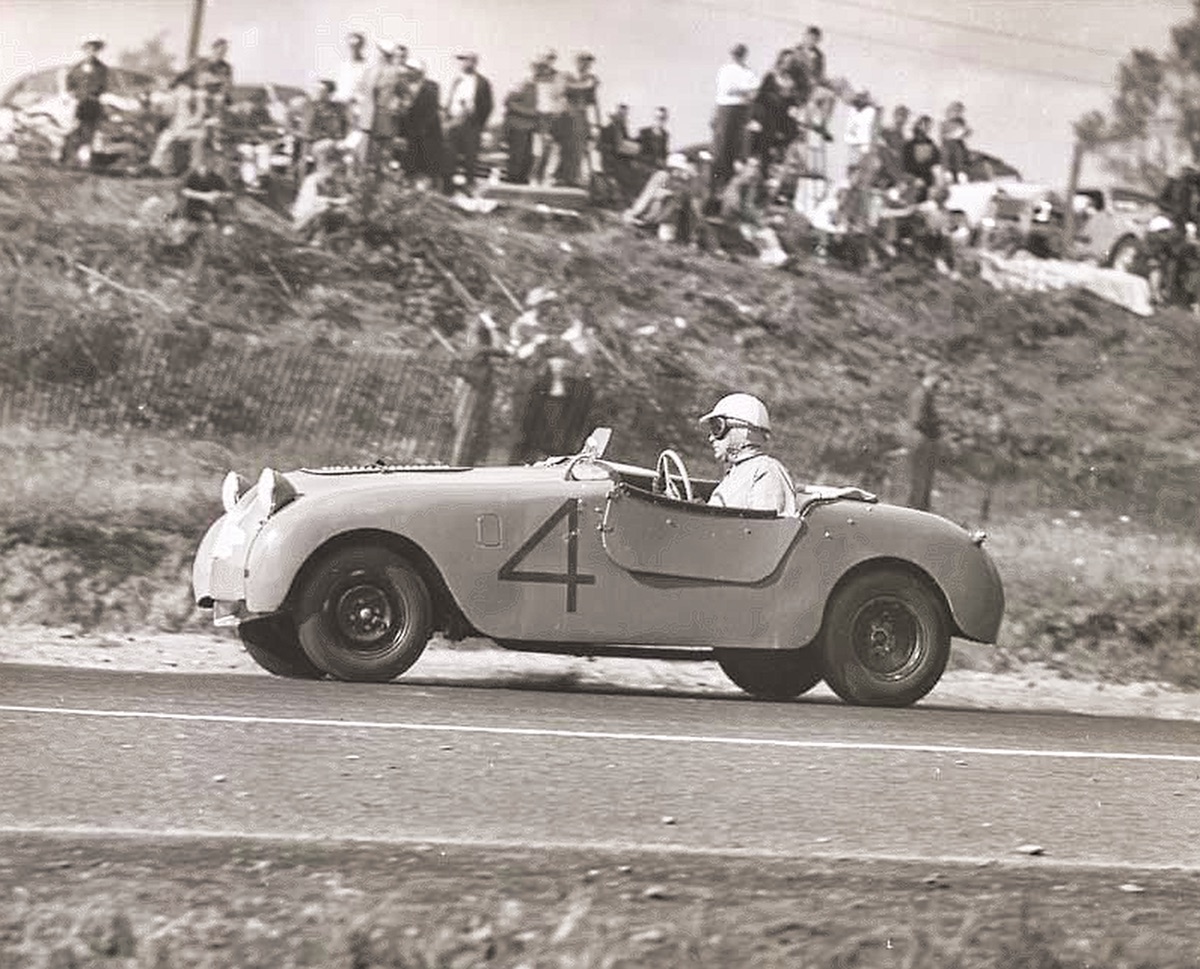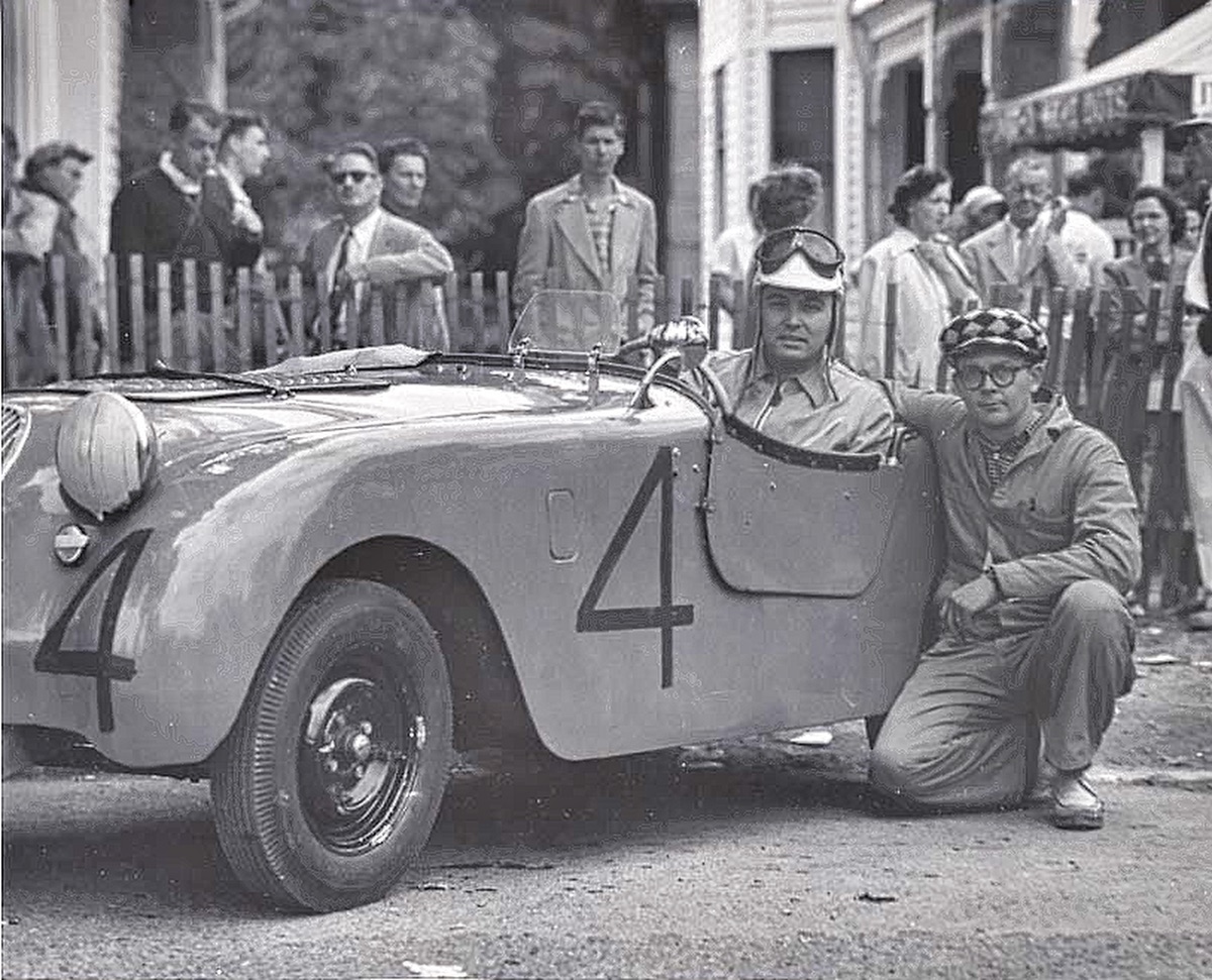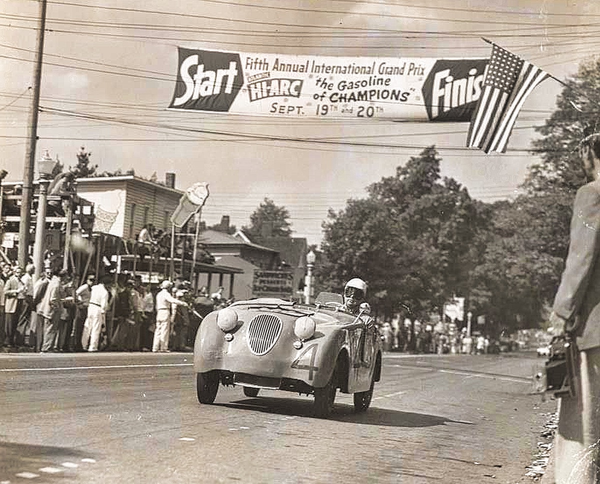 Hotshot at 1952 Watkins Glen, the last year the race was run on surface roads. It moved to a track in 1953 after 12 spectator were injured and 1 was killed in 1952. Richard Campbell reports number 4 was driven by Dolph Vilardi. |