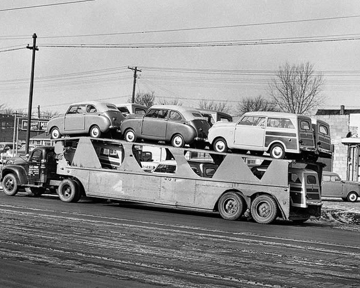 ![]() A nice load of 1947 CCs on Crosley's trick double wide on the top hauler. |